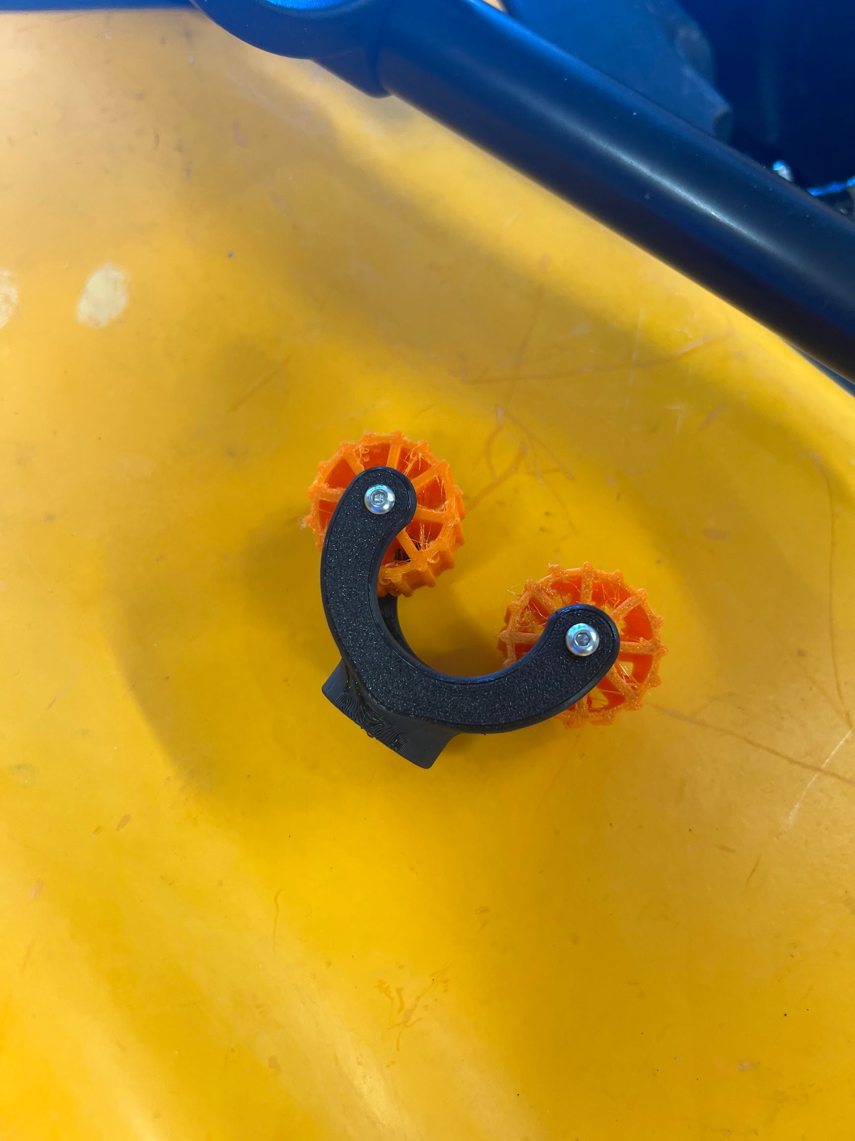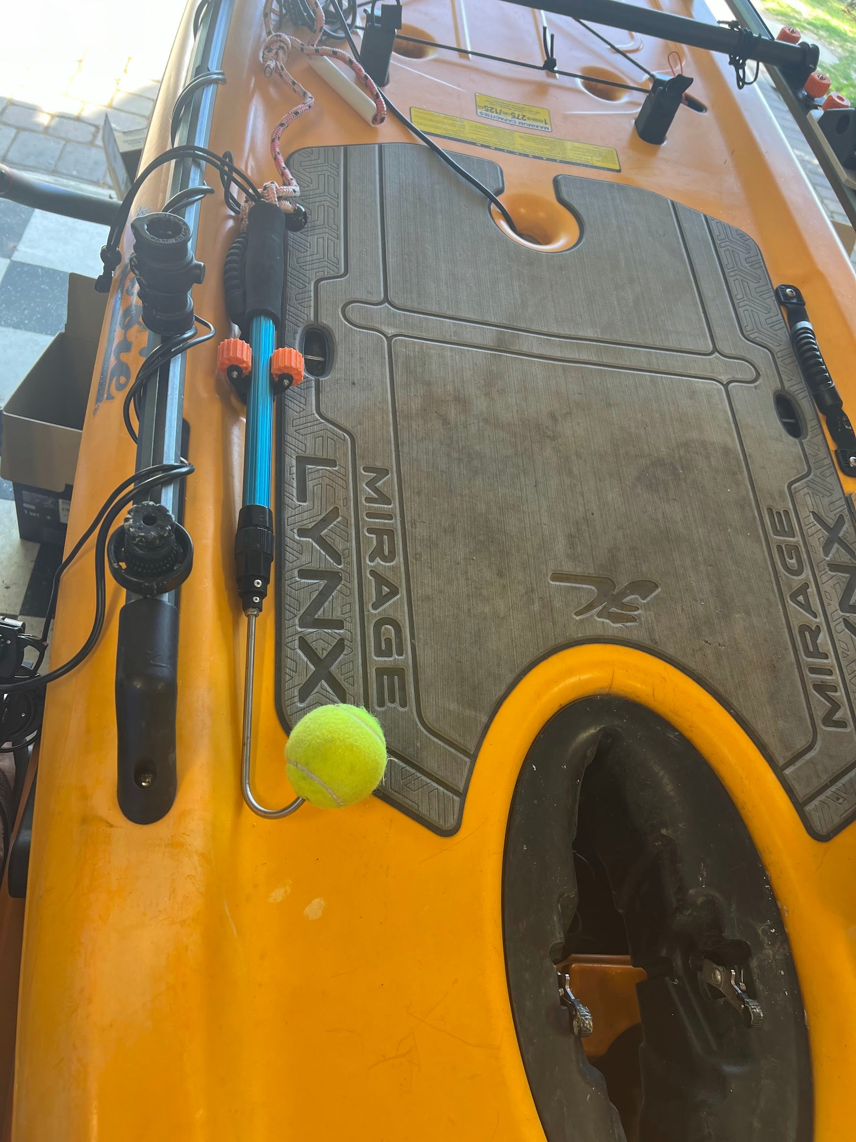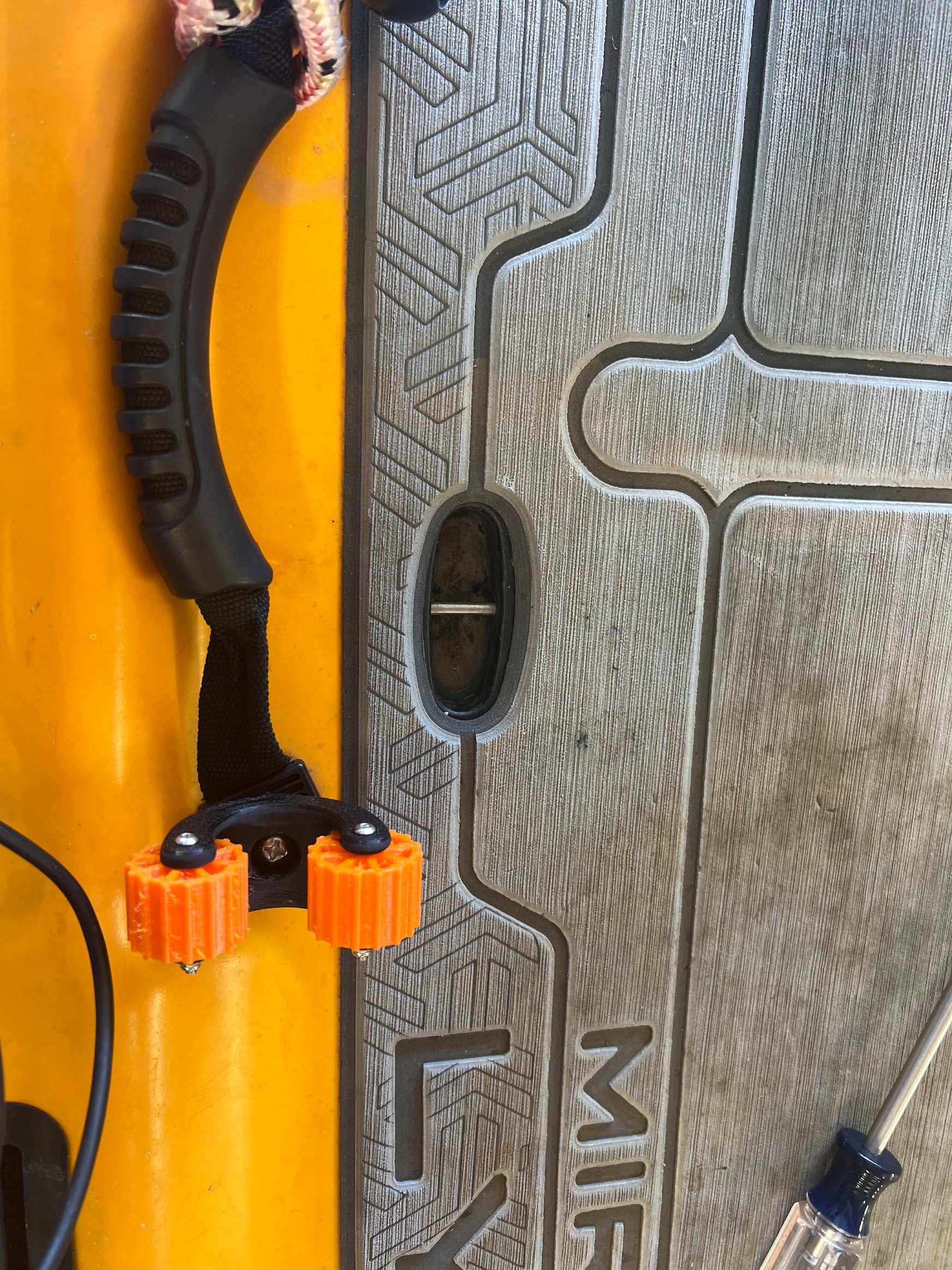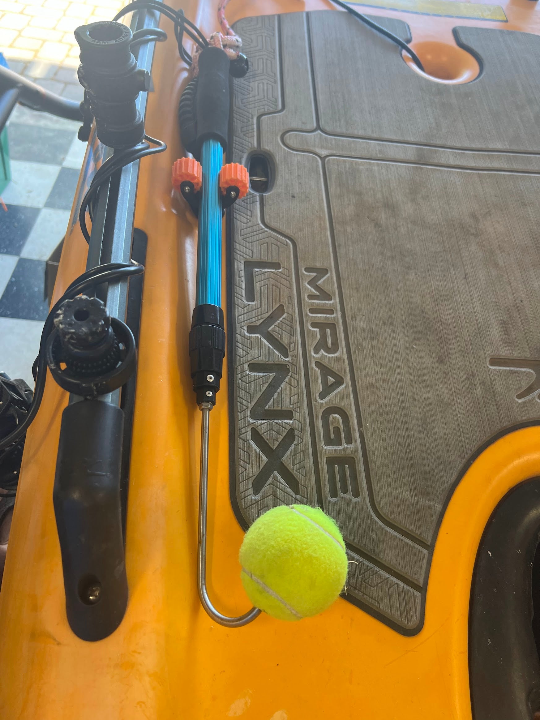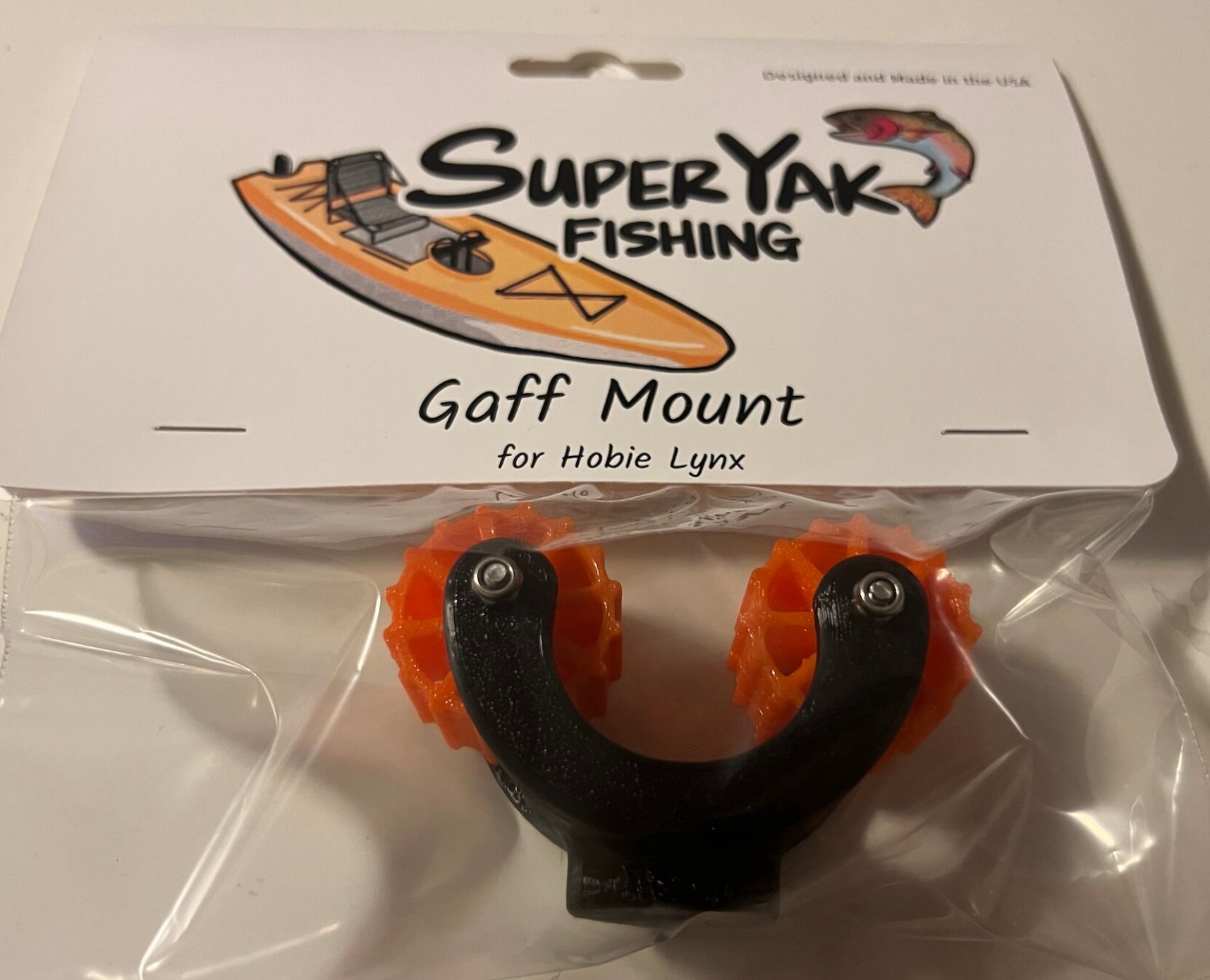When you're fishing, you always want your gaff handy and secure. Loosing them to Davy Jones' locker is real easy on the Lynx since there are no side wall keeping stuff from going over in the waves. This is a smaller version of our Net holder designed to holder these smaller Amazon gaffs. This is designed for a ~1" (~22-24mm) handle.