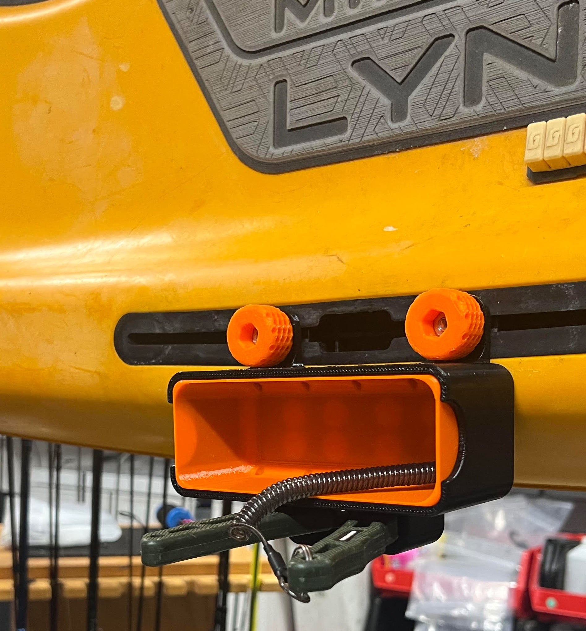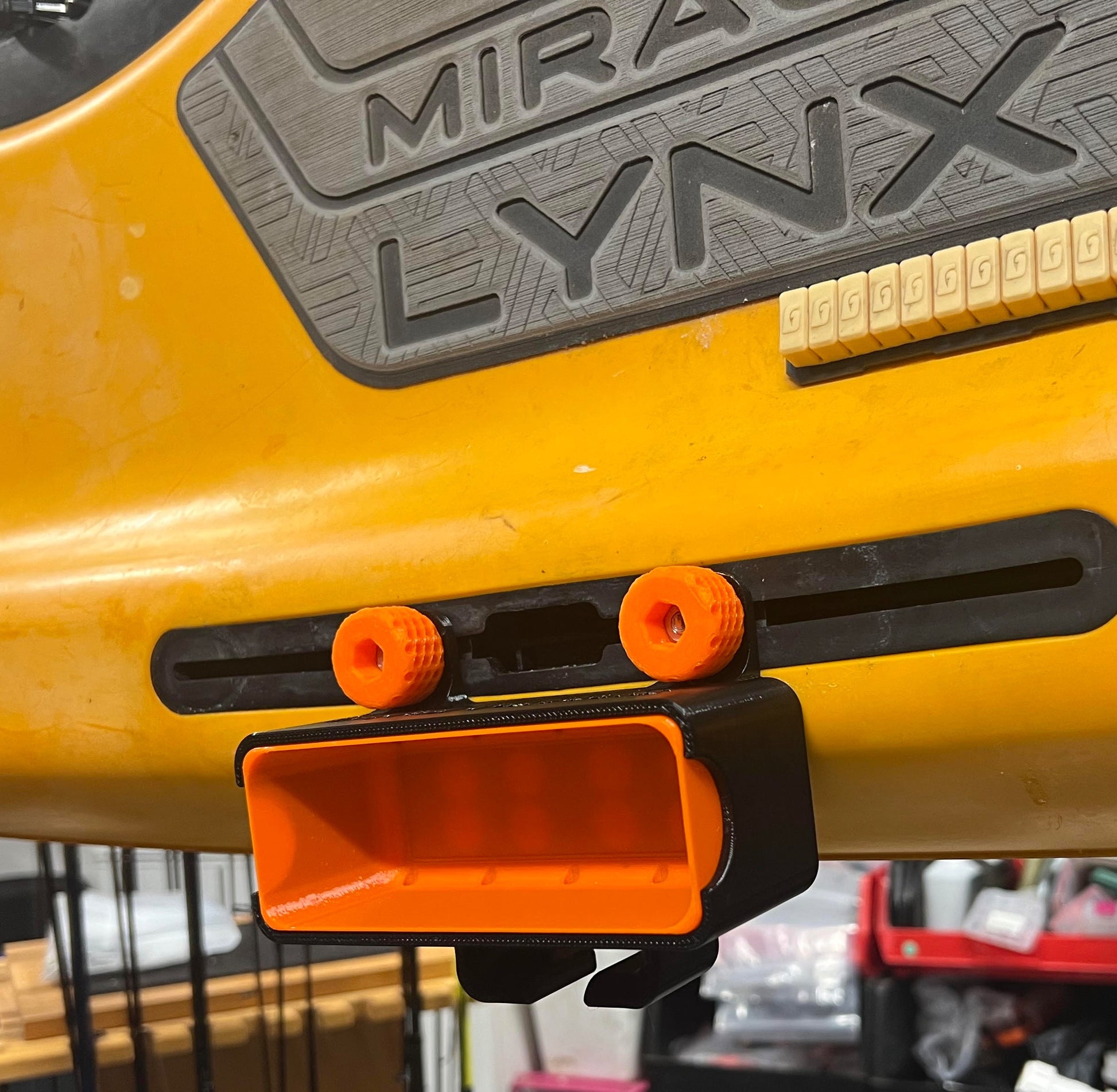 Due to popular demand we now have a side mounted Magnetic Tackle Bin. It can mount to any standard rail, but now takes less space. This is ideal if you have a Lynx, but no H Rails with limited Track space. Overall length of 6" and includes an integrated plier holder. Please note that integrated pliers need some clearance below the box to hang down (see pics).