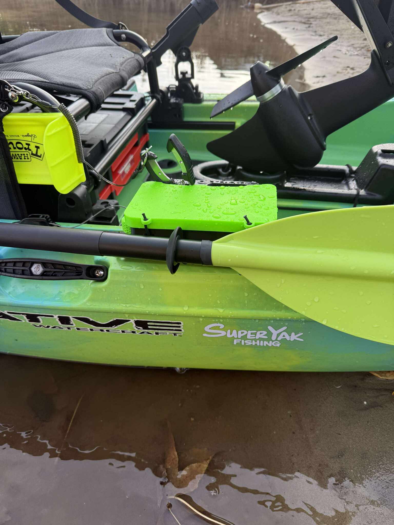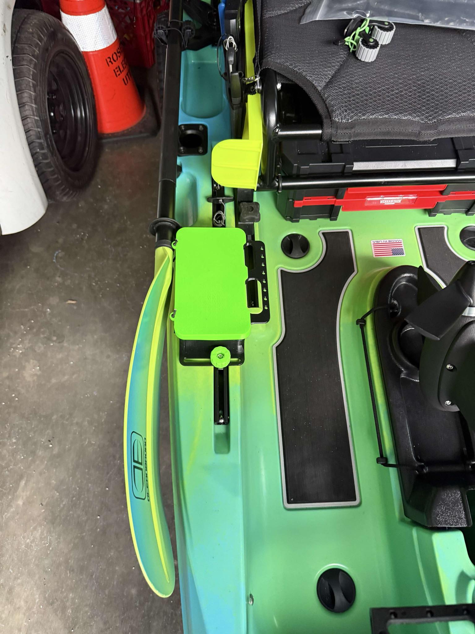 Throw a lot of plastic worms for bass and other species? We got you covered. This t-track mounted worm box has two 6.5" x 2" trays to hold your plastics ready to go. Tracks can be adjusted to fit most kayaks with t tracks. Both trays come with drain holes to keep your gear dry.